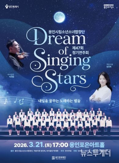뉴스투게더 김인숙 기자 | 용인문화재단은 오는 3월 21일 용인포은아트홀에서 용인시립소년소녀합창단 제47회 정기연주회'Dream of Singing Stars'를 개최한다고 밝혔다.