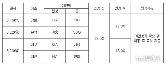 KBO 시범경기 개시 시간 변경
