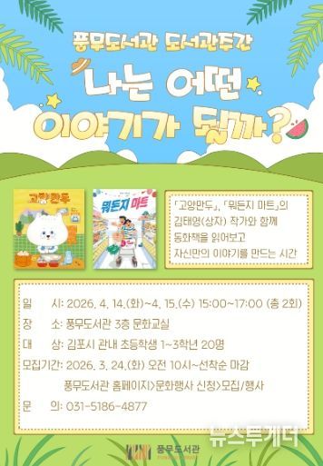 참여 신청은 3월 24일 오전 10시부터 풍무도서관 홈페이지에서 할 수 있으며, 김포시 관내 초등학생 1~3학년 20명을 선착순으로 모집한다