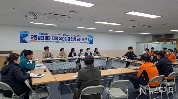 뉴스투게더 김인숙 기자 | 전남 구례군은 지난 10일, 단반트리지리산요양병원 회의실에서 화재 발생 시 신속한 대응과 입소자 안전 확보를 위한 ‘2026년 요양병원 화재 대비 유관기관 합동 도상훈련’을 실시했다고 밝혔다.
