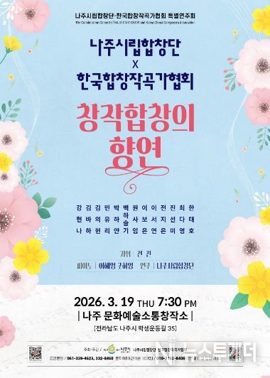 전진 나주시립합창단 예술감독은 “이번 공연은 한국 창작합창곡의 다양한 음악적 색채를 시민들과 함께 나누기 위해 준비한 무대”라며 “우리 작곡가들의 창작곡을 통해 한국 합창음악의 아름다움과 감동을 가까이에서 느끼는 시간이 되길 바란다”고 말했다.