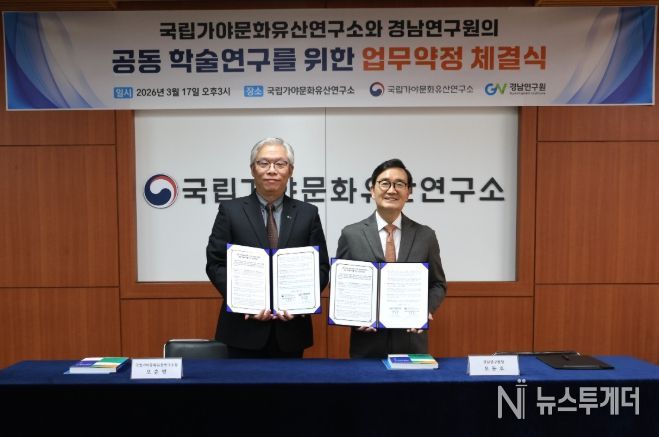 뉴스투게더 김인숙 기자 | 경남연구원과 국립가야문화유산연구소는 17일 국립가야문화유산연구소에서 경남 지역 문화유산의 체계적인 조사와 연구 협력 강화를 위해 업무협약을 체결했다.