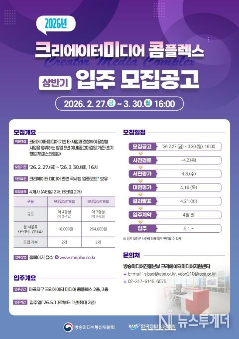 이와 함께 ‘디지털미디어 혁신 허브 플랫폼’을 통해 미디어 산업 정보 제공과 법률·세무 자문, 구인·구직 서비스 등을 제공하며 산업의 안정적인 성장 기반을 조성할 예정이다.