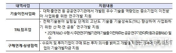 민관공동기술사업화 연구개발(R&D)은 기획부터 시장진출까지 민관 협력형 기술사업화 전주기를 지원해 공급-수요 간 기술성숙도 간극을 최소화하기 위해 신설된 기술사업화 전용 연구개발(R&D) 사업이다.
