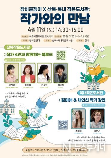 뉴스투게더 김인숙 기자 | 오는 4월 11일 여주시 산북작은도서관과 북내작은도서관에서‘2026년 찾아가는 창비글쟁이’기부 강연이 동시에 개최된다.
