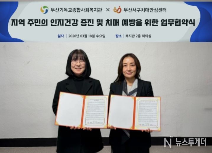 뉴스투게더 김인숙 기자 | 부산 서구치매안심센터(센터장 양태인)는 지난 18일 부산기독교종합사회복지관(관장 김정자)과 치매 예방 및 인지건강 증진을 위한 업무협약(MOU)을 체결했다.