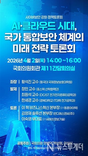 뉴스투게더 안상호 기자 | AI와 클라우드 전환이 가속화되는 가운데, 국가 보안 체계가 내부자 위협에 충분히 대응하지 못하고 있다는 지적이 제기됐다. 국회의원 민병덕·박선원·이상식 의원은 'AI·클라우드 전환 시대, 국가 통합보안 체계의 미래 전략'을 주제로 사이버보안 강화 정책토론회를 개최했다고 밝혔다. 이번 토론회는 데이터, 계정·권한, 물리적 접근 등 보안의 핵심 요소가 서로 분리된 상태로 운영되고 있는 현 구조의 한계를 점검하고, 통합보안 체계로의 전환 방향을 모색하기 위해 마련됐다.