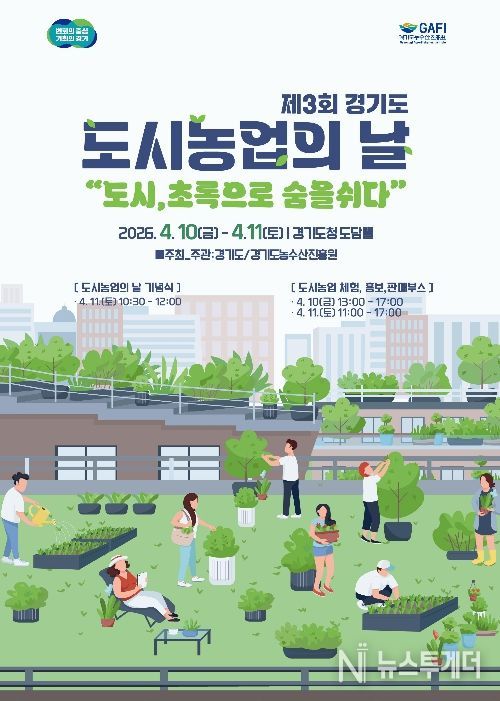 뉴스투게더 김인숙 기자 | 도시농업 관련 체험행사와 직거래장터, 공연 등을 즐길 수 있는 ‘제3회 경기도 도시농업의 날 기념행사’가 오는 10일부터 11일까지 양일간 경기도청 도담뜰에서 열린다.