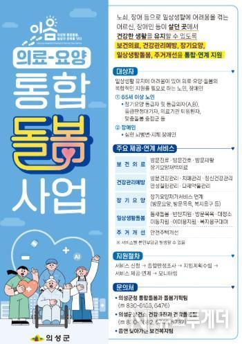 김주수 의성군수는 “의료·요양 통합돌봄사업이 어르신들이 평생 살아온 집과 마을에서 건강한 노후를 보낼 수 있는 든든한 기반이 되길 바란다”며 “앞으로도 서비스 질 향상과 돌봄 사각지대 해소를 통해 사업이 안정적으로 정착될 수 있도록 최선을 다하겠다”고 밝혔다.