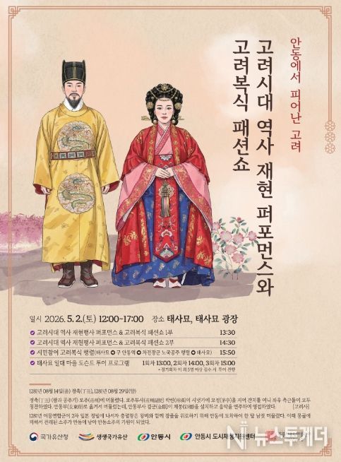 뉴스투게더 김인숙 기자 | 안동시 도시재생지원센터는 오는 5월 2일 12시부터 태사묘와 태사광장 일대에서 ‘2026년 생생 국가유산 사업’의 일환으로 진행되는 '안동에서 피어난 고려' 행사를 개최한다고 밝혔다.
