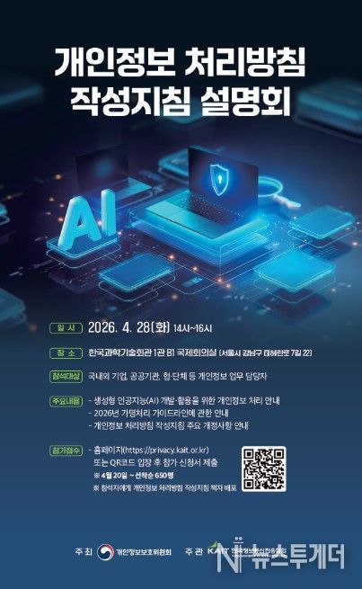 뉴스투게더 김인숙 기자 | 개인정보보호위원회는 생성형 인공지능(AI) 서비스의 확산과 온디바이스 등 신기술의 등장에 따른 변화된 데이터 처리 환경에 대응해 '개인정보 처리방침 작성지침'을 개정·공개했다.