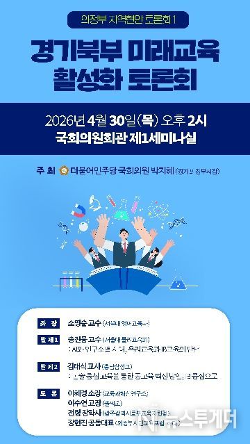 뉴스투게더 안상호 기자 | 더불어민주당 박지혜 의원(의정부시갑)은 오는 30일 오후 2시, 국회의원회관 제1세미나실에서 '경기북부 미래교육 활성화 토론회'를 개최한다.