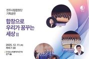 뉴스투게더 김인숙 기자 | 전주시립합창단(예술감독 겸 지휘자 김철)이 지역사회와 함께 만들어가는 연말 음악 축제를 선보인다. 전주시립합창단은 오는 11일 오후 7시 30분, 한국소리문화의전당 연지홀에서 지역 아마추어 합창단과 함께하는 송년음악회를 개최한다. ‘합창으로 우리가 꿈꾸는 세상Ⅱ’ 제하의 이번 공연에는 전주시립합창단을 비롯해 △좋은친구들남성합창단(지휘 이영수) △전주엘여성합창단(지휘 윤영권) △전북레이디스합창단(지휘 박신) △완주에버그린콰이어(지휘 강연모) △부귀초등학교 꿈드림합창단(지휘 임연정) 등 5개 아마추어 합창단이 무대에 오른다. 특히 이번 공연은 총 200명의 연주자가 참여하는 대규모 연합무대로, 시민들에게 웅장한 합창의 감동을 선사할 것으로 기대를 모은다. 뿐만 아니라 이번 공연에서는 전주를 주제로 한 위촉 초연곡 ‘그곳에서’를 처음으로 선보인다. 홍원표 시인의 시에 전주 출신 작곡가 이범준이 곡을 붙인 이 작품은 전주에 대한 그리움과 사랑, 그리고 다시 만남을 바라는 마음을 담아낸 노래로 구성됐으며, 공연 후반부 연합합창으로 울려 퍼지며 송년 무대의 절정을 장식할 예정이다.
