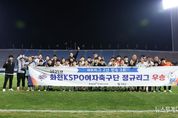 뉴스투게더 장영주 기자 | 한국 여자프로축구 최강인 화천 KSPO(국민체육진흥공단)가 올시즌 WK리그 챔피언의 자리에 재도전한다. 화천 KSPO는 오는 15일 오후 2시 화천생활체육공원에서 열리는 2025 WK리그 챔피언 결정전 2차전에서 서울시청을 불러들여 최종전을 치른다. 지난해에 이어 2년 연속 정규리그 1위를 차지한 화천 KSPO는 일찌감치 2025 WK리그 챔피언 결정전 직행 티켓을 거머쥐었다. 이미 화천 KSPO는 지난 8일 서울 월드컵 보조구장에서 열린 챔피언 결정전 1차전에서 서울시청을 3대2으로 제압하며 챔피언 왕좌에 등극하기 위한 유리한 고지에 올랐다. 올 시즌 화천KSPO는 28경기에서 16승9무3패(승점 57)를 기록하며 정규리그 1위를 차지했다. 정규 리그에서 56골을 터트리며 리그 득점 1위 팀에 오른 화천 KSPO의 팀컬러는 화끈한 공격축구다. 만약 화천 KSPO가 2025 WK리그 챔피언까지 차지한다면, 올해 제24회 전국여자축구선수권대회와 제106회 전국체육대회 우승에 이어 ‘트레블(3관왕)’을 달성하게 된다. 화천 KSPO는 지난