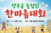 뉴스투게더 장영주 기자 | 양구군이 11일 농업기술센터 야외무대에서 ‘농업인 한마음대회’를 개최한다. 농업인 한마음대회는 11월 11일 농업인의 날을 맞아 농업인의 긍지와 자부심을 고취하고 농업과 농촌을 선도할 농업인 화합의 장을 마련하기 위해 양구군과 양구군농업인단체협의회가 공동으로 마련했다. 행사는 양구 관내 62개 농업인 단체(연합회, 작목회)에서 약 2800명이 참석할 예정이며, 다양한 공연과 전시 홍보, 어울마당 등이 진행된다. 먼저 행사는 방산면 풍물패의 식전 공연을 시작으로, 개회 선언, 유공자 포상, 감사패 수여, 대회사, 격려사, 축사 등의 순으로 진행된다. 공식 행사 후에는 직장인 밴드 ‘클로렐라’ 공연, 장기 자랑, 체육 경기, 경품 추첨 등 어울마당이 마련돼 농업인들이 함께 소통하며 즐길 수 있는 시간이 이어진다. 행사장 일원에는 사과·시래기 홍보관, 우수 농업기계 전시 등 여러 부스가 운영되며, 양구군 농협은 ‘가래떡 데이’를 기념해 가래떡과 커피·차류 시식 코너를 운영한다. 또한 국토정중앙면 상가번영회는 팝콘, 와플, 어묵 등을 제공하는 먹거리 부스를 운영해 풍성한 즐길거리