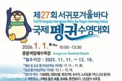 뉴스투게더 김인숙 기자 | 서귀포시가 주최하고, (사)서귀포시관광협의회가 주관하는 제27회 서귀포 겨울바다 국제펭귄수영대회가 2026년 1월 1일 병오년 새해 첫날과 함께 중문색달해수욕장에서 그 막이 열린다. 이번 국제펭귄수영대회는 국제행사에 걸맞게 한국관광공사 상하이 지사와 연계해 입수에 참여할 중국 관광객 110명을 유치했으며, 도외 관광객 110명도 참가를 신청했다. 이에 따라 전체 입수 인원 400명 중 220명(55%)이 도외·외국인 관광객으로, 지역경제에 활기를 불어넣을 것으로 기대된다. 이번 행사는 ‘안전’이 최우선으로 대두되는 바다 체험 행사인 만큼 입수 인원을 400명으로 제한하여 1회당 100명씩, 4회로 나눠 입수를 진행할 예정이며, '연안사고예방법'에 정한 규정보다 자율적으로 강화하여 혹시 모를 안전사고에 철저히 대비하며 행사가 준비하고 있다. 다만, 비상구조선 확보 문제로 입수 인원(400명)이 제한함에 따라 도민 신청 인원을 전부 수용할 수 없어 부대행사를 통한 참여도를 끌어 올린다는 복안이다. 오전 10시부터 시작되는 부대 프로그램은 DJ와 함께하는 챌린지 댄스파티를 시작