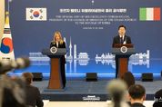 뉴스투게더 김태훈 기자 | 이재명 대통령은 19일 조르자 멜로니 이탈리아 총리와의 정상회담 뒤 "저와 멜로니 총리는 전략적 동반자 명칭에 부합하는 미래지향적 수준으로 양국 관계를 더욱 발전시켜 나가기로 합의했다"고 밝혔다. 이 대통령은 이날 청와대에서 멜로니 총리와의 정상회담 후 '공동 언론 발표'에서 이같이 말했다. 이 대통령은 "교역 분야 협력은 양국 경제규모와 브랜드 파워에 걸맞은 수준으로 더욱 확대하기로 했다"며 "이를 위해 양국 기업이 참여하는 한-이탈리아 비즈니스 포럼을 새 기회 창출의 장이자 기업 애로 상담 창구로 활성화하는 데 뜻을 모았다"고 밝혔다. 이어 "특히 중소기업 생태계가 잘 발달한 이탈리아의 강점을 바탕으로 중기 육성과 지원에 관한 협력도 함께 추진해 나갈 것"이라고 말했다. 이 대통령은 또 "국가 미래가 달린 과학분야 협력이 더욱 확대될 것"이라며 "기초응용분야 공동연구지원을 통해 역량 있는 연구자를 지속 발굴하고 인공지능, 우주항공 같은 첨단산업으로 협력의 지평을 더욱 넓혀가겠다"고 밝혔다. 이어 "방산 분야에서도 서로 강점에 기초해 상호 보완적 협력을 이뤄