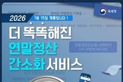뉴스투게더 장은미 기자 | 더 똑똑해진 연말정산 간소화 서비스 2026년 1월 15일 개통합니다! ■ 더~욱 새로워진 연말정산 간소화 서비스 기존 42개 자료+ 3개 자료 추가 1. 발달 재활 서비스 이용 증명 2. 장애인 활동 지원 급여 본인 부담금 자료 3. 체육시설 이용료 자료 ■ 더~욱 정교해진 소득 기준 초과 부양가족 명단 제공 소득 금액 100만 원 초과 부양가족에 대한 정보 연말정산 간소화 서비스 자료 조회 화면에서 안내 * 근로소득만 있는 경우 총급여 500만 원 - 소득 기준 초과 부양가족 내역 * 자세한 사항은 국세청 블로그를 참고해주세요! ■ AI 전화 챗봇 상담 - 국세 상담센터: ☎126→0번→0번(상담사 또는 AI 상담사 연결) - 세무서: 대표번호→2번→6번(AI 상담사 연결) (AI 상담사) · 주민등록번호 입력 후 본인인증 연말정산 간소화 자료 일괄 제공 현황, 부양가족의 간소화 자료 제공 동의 현황 등 · 생성형 AI 챗봇 상담 시범 운영 경로→홈택스 접속→홈택스 퀵메뉴→챗봇 상담 클릭 *홈택스 ■ 연말정산 유의