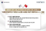 뉴스투게더 장은미 기자 | 대한민국-중국 식품 교역 확대와 안전 협력이 한층 강화됩니다. - '식품안전협력'과 '자연산 수산물 수출입 위생' 양해각서(MOU) 체결('26.1.5.) 양국 간 식품안전 협력 강화 식품안전 법률·규정 등 정보 교환, 수입식품 부적합 정보 제공 및 현지실사 협조 등 식품안전 규제 분야 협력 체계 구축 식품 수출 공장 등록 절차 간소화 식약처가 일괄 등록 가능해져 복잡하고 오래 걸리던 절차 부담 완화 자연산 수산물 수출 절차 완화 자연산 수산물 신규 수출 등록 시 위생평가가 제외되어 우수한 K-수산물의 중국 시장 진출 확대 기대 "식약처는 국제 협력을 통해 K-푸드의 글로벌 경쟁력 강화와 수출을 적극 지원하겠습니다."