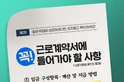 뉴스투게더 장은미 기자 | 체크! 알바·취업에 성공하셨다면, 잊지말고 확인하세요! ■ 근로계약서에 꼭! 들어가야 할 사항 *근로기준법 제17조 제2항 ① 임금 구성항목·계산 및 지급 방법 ② 소정근로시간 ③ 휴일 ④ 연차 유급휴가 - 작성 후 반드시 1부를 노동자에게 교부 - 위반할 경우 사업주 대상 500만 원 이하의 벌금