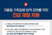 뉴스투게더 장은미 기자 | 겨울철 가축질병 방역 강화를 위한 긴급 재정 지원 - 고병원성 조류인플루엔자 방역 강화를 위해 9개 시·도*에 재난안전특교세 30억 원을 지원 *광주, 세종, 경기, 충북, 충남, 전북, 전남, 경북, 경남 - 이번 지원은 고병원성 조류인플루엔자가 지속적으로 발생하는 지역의 소독약품 구입, 거점소독시설 및 이동통제초소 운영 등 보다 강화된 현장 방역활동을 지원하기 위해 결정 - 행안부는 지난해 11월 24일에 14개 시·도에 고병원성 조류인플루엔자 확산 방지를 위한 재난안전특교세 50억 원을 지원했으며 이번까지 포함하면 총 80억 원을 지원