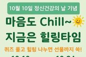 뉴스투게더 김인숙 기자 | 부평구 부평정신건강복지센터는 세계 정신건강의 날(10월 10일)을 맞아 10일부터 24일까지 ‘온라인 힐링 캠페인’을 진행한다. 이번 캠페인은 누구나 정신건강의 중요성을 쉽고 재미있게 되새길 수 있도록 기획됐다. 참여자는 포스터 내 큐알(QR)코드를 통해 ▲세계 정신건강의 날 관련 퀴즈 풀기 ▲스트레스 해소 방법 공유 ▲‘나만의 소울OO(장소·노래·음식 등)’ 작성하기 등 설문에 응답할 수 있다. 센터는 오는 31일 설문에 참여한 선착순 200명에게 편의점 상품권(기프티콘)을 증정할 계획이다. 허휴정 센터장은 “이번 캠페인은 구민들이 일상 속에서 정신건강의 의미를 되새기고, 스스로를 돌보는 방법을 공유하는 기회가 될 것”이라며 “앞으로도 구민들의 정신건강 증진을 위해 다양한 사업을 이어가겠다”고 말했다.