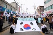 뉴스투게더 김인숙 기자 | 양주시가 1일 가래비3·1운동순국기념사업회 주관으로 양주시 광적면 소재 3·1운동 기념공원에서 '제107주년 양주 가래비 3·1운동 기념식 및 재연행사'를 개최하고 순국선열의 숭고한 희생정신을 기렸다. 이날 행사에는 양주시와 양주시의회, 경기북부보훈지청, 동두천양주교육지원청, 농협은행 양주시지부 등 기관 관계자와 독립유공자 유가족, 보훈단체 관계자, 사회단체장, 시민 등 600여 명이 참석했다. 행사는 국민의례를 시작으로 독립선언서 낭독, 기념사, 삼일절 노래 제창, 만세삼창, 기념공연, 거리만세행진 순으로 진행됐다. 기념 공연으로는 1919년 가래비 만세배미 현장을 재연한 창작 뮤지컬 ‘기억하라! 그날!’과 양주시립합창단 공연이 이어졌다. 시민들은 가래비 일대에서 전개됐던 만세운동을 재연하는 거리만세행진에 참여해 태극기를 흔들며 “대한독립 만세”를 외쳤다. 행사장에는 관내 독립운동가를 알리는 전시와 함께 시민이 태극기에 순국선열을 향한 감사와 소망의 메시지를 남기는 ‘시민 참여 보훈문화행사’도 마련됐다. 완성된 태극기는 양주시청 3층 갤러리에 전시될 예정이다.