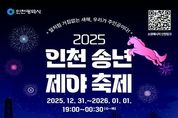 뉴스투게더 김인숙 기자 | 인천광역시는 오는 12월 31일, 한 해의 마무리와 새해의 시작을 시민과 함께 기념하기 위해 ‘2025 인천 송년제야 축제’를 인천문화예술회관 야외광장에서 개최한다고 밝혔다. 이번 송년제야 축제는 시민들이 직접 참여하고 체감할 수 있는 연말연시 대표 축제로, 오후 9시부터 자정 이후까지 공연·체험·공식행사가 연이어 진행되며 도심 속 축제 분위기를 한껏 끌어올릴 예정이다. 행사는 시민참여 무대를 시작으로, 인천 지역 예술단체인 구각노리, 루나플로우, 성악가 윤소정의 공연이 이어지며, 초청 가수 정동하, 퍼포맨즈가 무대에 올라 연말의 열기를 더한다. 아울러 행사장 곳곳에는 AI 타로 체험, 소원나무 메시지, 윷놀이 등 시민 누구나 즐길 수 있는 체험 프로그램과 함께, 높이 7m 규모의 대형 미디어아트 포토존이 설치돼 시민들에게 특별한 추억을 선사할 계획이다. 자정 이후에는 불꽃쇼가 펼쳐지며 새해의 시작을 화려하게 장식한다. 특히, 2026년 새해를 알리는 제야의 종 타종식은 시민과 함께하는 상징적 행사로 진행된다. 시민상·문화상 수상자, 국내 유망 체육인, 자원봉사자, 소방관