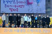 뉴스투게더 김인숙 기자 | 오세훈 서울시장은 19일 17시, 도심 속 겨울 놀이터 ‘서울광장 스케이트장’ 개장식에 참석했다. 올해로 19번째 겨울을 맞은 서울광장 스케이트장은 내년 2월 8일(일)까지 운영한다. 운영시간은 일요일부터 금요일까지는 10시부터 21시 30분까지, 토요일과 공휴일에는 10시부터 23시까지이다. 올해 서울광장 스케이트장은 ‘윈터링(Winter Ring)’을 주제로 새롭게 단장해 밝고 경쾌한 축제 분위기를 강화했으며, 입장료는 2004년 첫 개장부터 변함없는 1,000원으로 시민과 관광객 누구나 부담 없이 즐길 수 있다. 타악기 퍼포먼스 그룹 ‘라퍼커션’의 공연으로 시작된 개막 행사는 서울특별시 빙상연맹 소속 이래인 선수의 피겨스케이팅 공연으로 이어지며 관람객을 반겼다. 특히 2026 밀라노-코르티나담페초 동계올림픽 출전을 앞둔 심석희·차준환 선수는 빙상종목 유망주 선수들에게 소장품을 전달해 따스함을 더했다. 시는 개장식 행사 후, 시민들에게 스케이트장을 무료로 개방해 개장 첫날 시민들이 마음껏 즐길 수 있도록 했다. 오 시장은 “시민 여러분들이 서울의 겨울을 즐