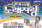 뉴스투게더 김인숙 기자 | 대한민국 대표 전국민 참여 노래 경연 프로그램인 ‘KBS 전국노래자랑’ 함양군편이 함양스포츠파크체육관 준공을 기념해 2026년 1월 13일, 새롭게 준공된 함양스포츠파크체육관에서 개최된다. 이번 행사는 체육관의 성공적인 준공을 축하함과 동시에 지역 주민 간 소통과 화합을 도모하기 위해 마련됐으며, 함양군민을 비롯해 함양 소재 사업자, 직장인, 학생 등 누구나 참여할 수 있다. 참가 희망자는 2025년 12월 22일부터 2026년 1월 7일까지 읍·면 행정복지센터와 함양군청 문화체육과를 방문해 접수하거나, 이메일을 통해 신청하면 된다. 예심은 2026년 1월 11일 오후 1시, 함양군 고운체육관에서 진행될 예정이며, 예심을 통과한 참가자들이 본선 무대에 올라 노래 실력을 겨루게 된다. 이번 KBS 전국노래자랑 함양군편은 남녀노소에게 큰 사랑을 받는 진행자 남희석의 사회로 진행되며, 초대 가수로 배일호, 현숙, 강문경, 미스김, 성민지 등이 출연해 다채로운 무대를 선보일 예정이다. 함양군 관계자는 “이번 행사가 지역 문화예술 향유 기회를 넓히는 것은 물론, 군민