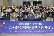 뉴스투게더 김인숙 기자 | 수원특례시는 18일 팔달문화센터 예당마루홀에서 ‘2025년 정원문화 발전 유공 시상식’을 열었다. 정원문화 발전에 기여한 시민과 단체 등에 수원시장상(47개)과 수원시의회 의장상(7개)을 수여했다. 시상은 표창장·감사패 수여, 시민정원 경연대회, 베스트 관리상, 올해의 정원인상 등 분야별로 진행됐다. 지난 10월 효원공원에서 열렸던 ‘2025년 수원시 시민정원 경연대회’ 수상팀들을 시상했다. 하나의 물방울이 만들어내는 무한한 생명의 파장을 표현한 ‘완뚝원정대’의 ‘리플(ripple) 가든’이 대상을 받았다. 어린 꽃이 꿈꾸는 산의 이미지를 담은 ‘진달래동산 꽃뫼’ 팀의 ‘어린 꽃이 꿈꾸는 뫼(산)’이 최우수상, 빛과 생명의 흐름을 표현한 ‘빛나게’ 팀의 ‘Flowing Light, Flowering Life(플로잉 라이트, 플라워링 라이프’가 우수상을 받았다. 이재준 수원시장은 “도심 속 열린 정원은 시민에게 휴식처가 되고, 기후 위기 대응에는 힘이 된다”며 “정원을 가꾼 수상자 노력에 감사하며 시민 일상에 초록이 늘도록 지원을 이어가겠다”고 말했다.