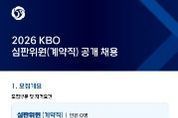뉴스투게더 윤종우 기자 | KBO는 퓨처스리그에서 활동할 KBO 심판위원을 공개 채용한다. 이번 채용은 KBO 야구심판 양성과정 수료자(2026년 야구심판 양성과정 수료 예정자 포함) 또는 대한야구소프트볼협회(KBSA) 및 산하단체, 독립리그 소속 심판으로 1년 이상의 심판 활동 경력(단체장 직인 필수) 보유자에 한해서 지원이 가능하다. 최종 합격자는 2026 KBO 공식 심판위원으로 활동하게 되며, 근무 종료 후 평가 결과에 따라 정규직 전환이 검토된다. 채용과 관련된 세부 정보 및 우대 사항은 채용 공고문을 통해 확인 가능하다. 접수 기간은 오늘(2일)부터 23일(월)까지며, KBO 채용 홈페이지(kbo.saramin.co.kr)에서 지원 가능하다.