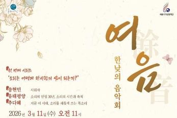 뉴스투게더 김인숙 기자 | 군포문화재단은 오는 3월 11일과 5월 13일 두 차례에 걸쳐 군포문화예술회관 철쭉홀에서 세종국악관현악단의 한낮의 음악회 '여음'을 개최한다. 이번 공연은 수요일 오전, 바쁜 일상 속에서 잠시 벗어나 차 한 잔의 여유와 함께 음악과 이야기를 나누며 소리가 삶이 되어온 시간을 되짚어보는 토크 콘서트 형식으로 진행된다. 음악평론가 송현민의 사회와 해설 아래, 아티스트들이 각자의 주제에 맞춰 삶과 음악을 공유하고 실내악 편성의 라이브 연주를 통해 깊은 울림을 전할 예정이다. 3월 11일 열리는 1회차 공연은 ‘소리는 어떻게 한 사람의 삶이 되는가?’를 주제로 한다. 30년 소리 인생을 축적해온 유태평양과 현대적 감각으로 소리를 새롭게 해석하는 추다혜가 출연하여, 각자의 궤적을 대화와 연주로 풀어낸다. 군포문화재단 전형주 대표이사는 “단순히 듣는 공연을 넘어, 아티스트가 평생을 바쳐 일궈온 '소리'라는 인생의 궤적을 시민들과 함께 사유하고 나누고 싶었다”며 “정오의 햇살처럼 따뜻한 국악의 선율이 공연이 끝난 뒤에도 시민들의 마음속에 긴 '여음'으로 남아 일상을 버티는 부드러운 힘이 되길 기대