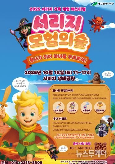 뉴스투게더 김인숙 기자 | 대구 북구청은 오는 10월 18일 동호동 서리지 생태공원 일원에서 '2025 서리지 가족 체험 페스티벌 – 서리지, 모험의 숲'을 개최한다고 밝혔다.