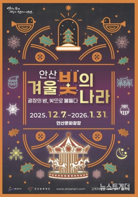 뉴스투게더 김인숙 기자 | 안산시는 주말인 오는 7일을 시작으로 내년도 1월 31일까지 두 달여 간 고잔동 안산문화광장 일대에서 겨울 야간 축제, ‘2025 안산 겨울 빛의 나라’를 개최한다고 1일 밝혔다.