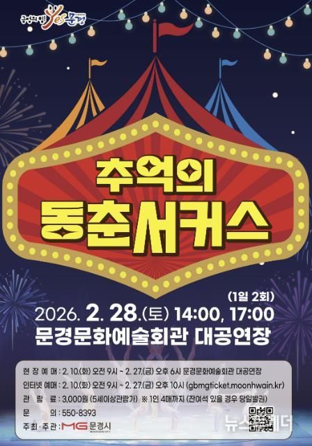 뉴스투게더 김인숙 기자 | 문경문화예술회관에서는 가족 연인 직장 동료들과 함께 재미있게 볼 수 있는 추억의 동춘서커스 공연을 2월 28일(토) 14:00, 17:00 (1일2회)에 문경문화예술회관 대공연장에서 개최한다.