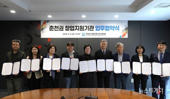 뉴스투게더 김재윤 기자 | 강원디자인진흥원은 5월 2일 강원디자인진흥원 대회의실에서 춘천권 창업지원기관 9개 기관과 업무협약을 체결했다. 이번 협약을 통해 춘천권 내 창업지원을 담당하는 9개 기관과 함께 창업기업의 성장과 창업지원사업의 활성화를 위한 협력 체계를 구축하고, 폭 넓은 창업지원과 협력을 강화하기로 했다.