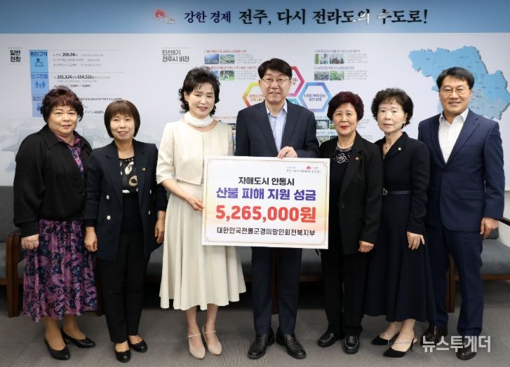 뉴스투게더 김태훈 기자 | 대한민국 전몰군경미망인회 전북특별자치도지부는 7일 전주시를 찾아 경북 안동시 산불 피해 주민을 위한 성금 526만5000원을 전달했다.