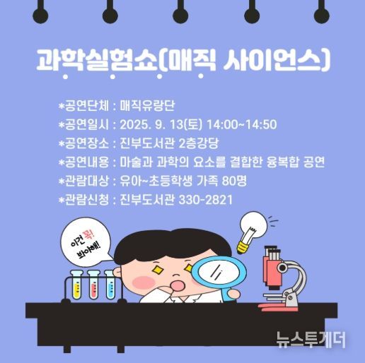 이번 공연은 5세 이상 어린이와 가족 80여 명을 대상으로 부모와 아이가 함께 참여할 수 있도록 기획됐으며, 체험형 과학 실험을 주제로 재미와 학습을 동시에 느낄 수 있는 시간이 될 예정이다.