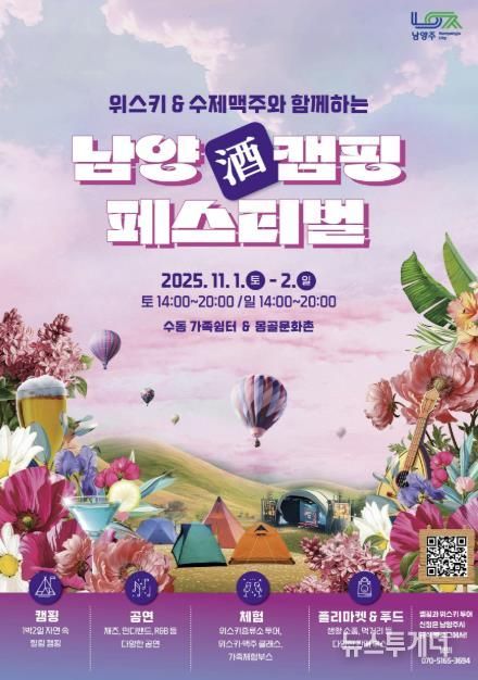 시 관계자는 “남양주의 자연 속에서 캠핑과 공연, 먹거리, 지역 술까지 다양하게 즐길 수 있는 가을 축제를 마련했다”며 “특히 지역에서 만든 술을 직접 체험해볼 수 있는 이번 행사가 시민들에게 색다른 즐거움이 되길 바란다”고 말했다