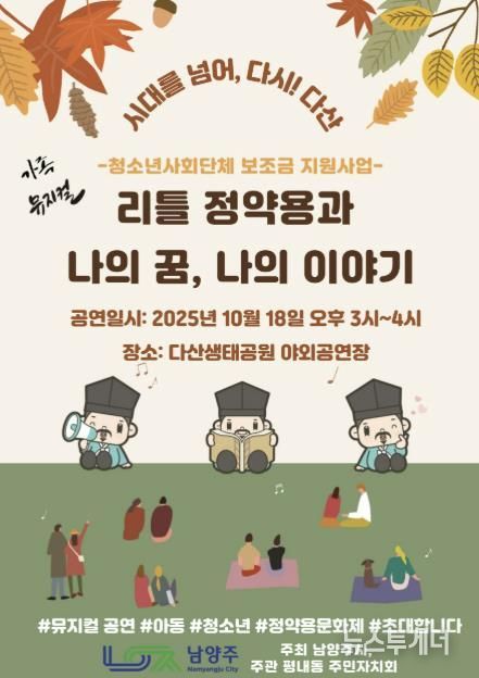 뉴스투게더 김인숙 기자 | 남양주시는 오는 10월 18일 조안면 다산생태공원에서 아동·청소년 대상 가족뮤지컬인 ‘리틀 정약용’을 선보인다.