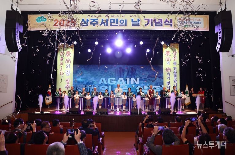 뉴스투게더 김인숙 기자 | 상주시는 Again, 慶尙의 꿈 ‘상주’를 주제로 한 시민의 날 기념식을 10월 2일 상주문화회관 대공연장에서 개최했다. 상주시민의 날(매년 10월 12일)을 앞두고 개최된 이날 기념식에는 상주시 노인회장과 읍면동 분회장 등 지역 원로들과, 각급 기관·단체장, 출향인 등 500여 명의 시민이 함께해 Again, 慶尙의 꿈의 실현을 향한 염원을 한데 모았다.
