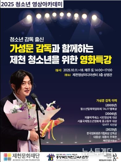 뉴스투게더 김인숙 기자 | 제천문화재단은 오는 11일과 18일 오후 2시 제천영상미디어센터 봄에서 ‘청소년 영상아카데미’교육생을 대상으로 가성문 감독과 함께하는 청소년 영화특강을 개최한다고 밝혔다.
