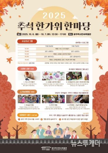 뉴스투게더 김인숙 기자 | 광주역사민속박물관은 추석 명절을 맞아 오는 6일부터 7일까지 이틀간 ‘2025년 추석 한가위 한마당’을 개최한다.