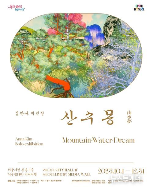 뉴스투게더 김인숙 기자 | 서울시는 2025. 10월 1일부터 12월 31일까지 서울시청 본관 1층 로비 ‘서울림(林)’ 미디어월에서 미디어아트 신작 《산수몽(山水夢)》 전시를 개최한다고 밝혔다.