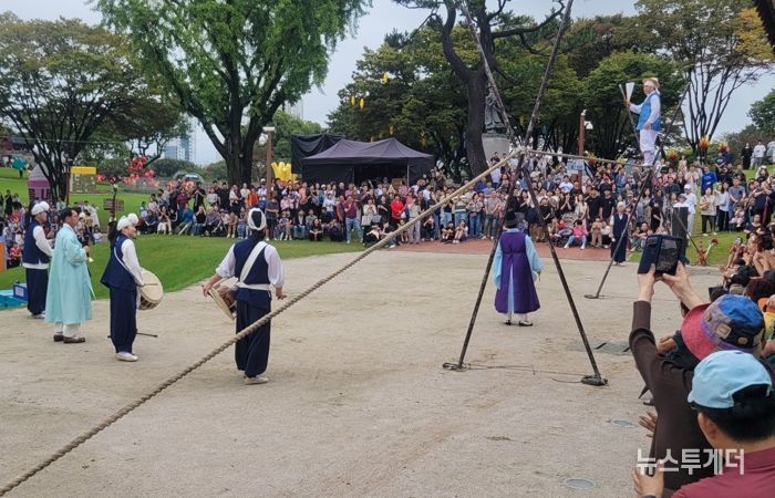이번 공연은 10월 4일부터 9일까지 1일 1회(추석당일 제외), 총 5회 일정으로 많은 시민과 관광객이 참여해 낮 시간대에 펼쳐지는 공연임에도 관람석이 가득 찰 만큼 뜨거운 열기를 보였다.