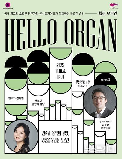 뉴스투게더 김인숙 기자 | 클래식부산은 내일(10일) 오전 11시, 부산콘서트홀에서 해설이 있는 입문형 오르간 콘서트〈헬로(HELLO) 오르간〉 시리즈의 세 번째 무대 '건축과 음향의 공명, 영혼을 울리는 오르간' 공연을 선보인다고 밝혔다.