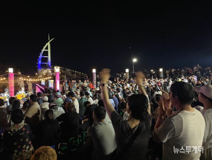 ‘금토금토 새연쇼’는 지난 7월 25일부터 매주 금요일과 토요일 밤마다 서귀포 새연교에서 진행되는 대표 야간 문화공연이다. 서귀포시에 따르면 지금까지 총 21회에 걸쳐 진행되며 매회 1,600여 명이 관람했고, 지난 9월 27일에는 누적 관람객 3만 명을 돌파해 서귀포의 새로운 관광이벤트로 자리매김하고 있다.