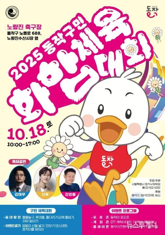 뉴스투게더 김인숙 기자 | 동작구가 오는 18일 오전 10시 노량진축구장(노들로 688)에서 ‘2025 동작구민 화합 체육대회’를 개최한다고 밝혔다.
