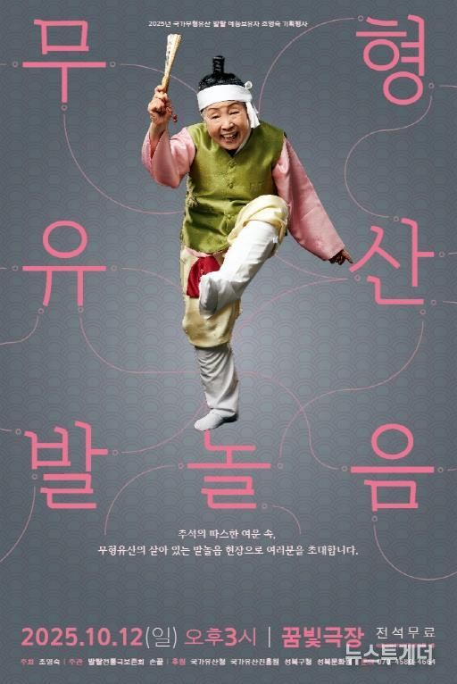 10월 12일 오후 3시 성북구 꿈빛극장(성북구 길음로7길 20 서울성북미디어문화마루 4층)에서 펼쳐지는 국가무형유산 발탈 예능보유자 조영숙 명인의 '무형유산 발놀음'이다. 성북구청 외에도 국가유산청과 국가유산진흥원, 성북문화원이 후원했다.